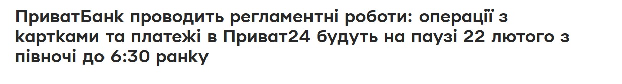 У ніч на 22 лютого "ПриватБанк" проводить планові регламентні роботи процесингу, платіжних систем та сервісів для підвищення якості та безпеки платежів та операцій із платіжними картками.