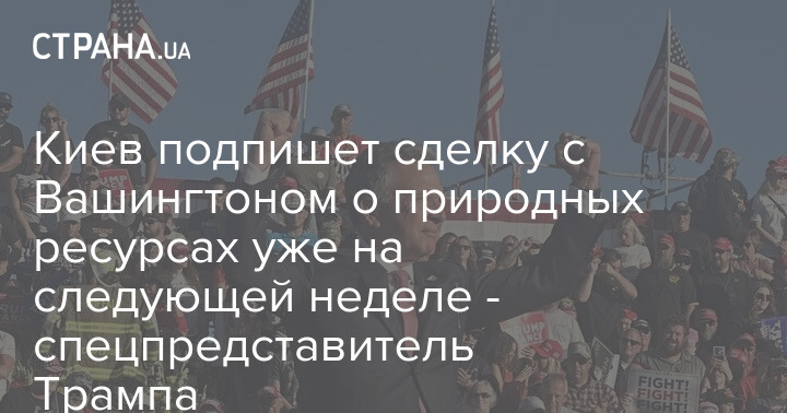 Київ підпише угоду з Вашингтоном щодо природних ресурсів вже наступного тижня - спецпредставник Трампа