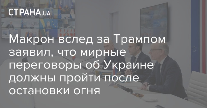 Президент Франції Емманюель Макрон підтримав позицію глави Білого дому Дональда Трампа, згідно з якою в Україні спочатку необхідно припинити бойові дії, а потім провести мирні переговори та досягти згоди з гарантіями безпеки.
