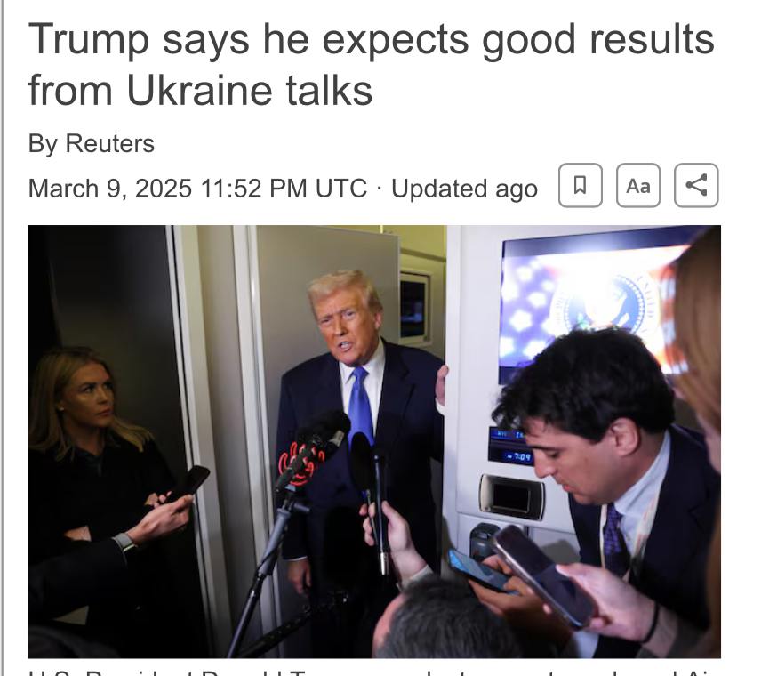 Трамп також повідомив, що очікує на хороші результати від переговорів США з Україною в Саудівській Аравії. "Думаю, цього тижня ми досягнемо значного прогресу", - додав він.