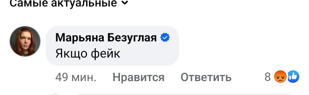 "Якщо фейк", - прокоментувала нардеп Мар'яна Безугла, давши зрозуміти, що збиття літака може бути правдою.