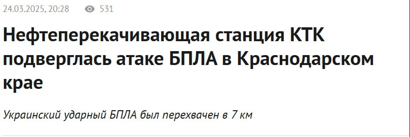 Після знищення нафтоперекачувальної станції "Кропоткінська" в Краснодарському краї Росії ударом безпілотника транспортування через неї американсько-казахстанської нафти в найближчому майбутньому неможливе.