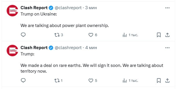 "Ми уклали угоду про рідкісноземельні метали. Незабаром підпишемо. Зараз ми говоримо про територію", - сказав глава Білого дому.