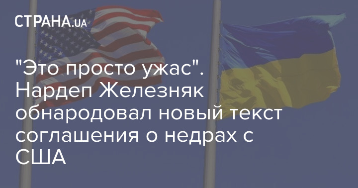 "Це просто жах". Нардеп Желєзняк оприлюднив новий текст угоди щодо надр із США