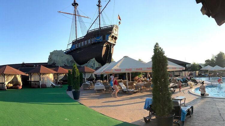 У Мережі з'явилося відео корабля, що горів, який був встановлений як декорація на території готельно-ресторанного комплексу "Бартоломео", по якому вдарив "Шахед".