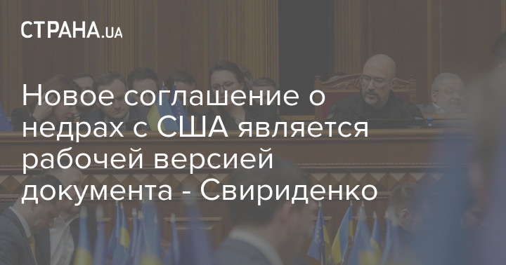 Нова ресурсна угода зі США – це робоча версія документа, що відображає позицію американської сторони. Про це повідомила віце-прем'єр-міністр України Юлія Свириденко під час виступу в парламенті.