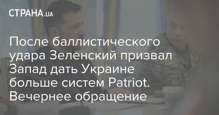 Президент Володимир Зеленський після сьогоднішнього удару балістикою закликав Захід надати Україні більше систем протиповітряної оборони Patriot.