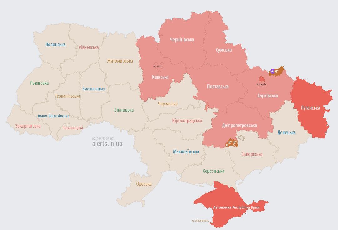 8.10 Тривога у Києві та низці областей. Загроза балістики, повідомляють ЗСУ.
