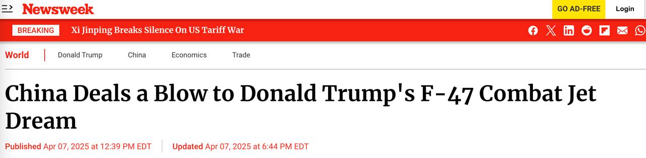 Експортні обмеження Китаю на експорт рідкісноземельних елементів у США не дозволять американцям створити новий винищувач шостого покоління F-47, який нещодавно анонсував президент Дональд Трамп.