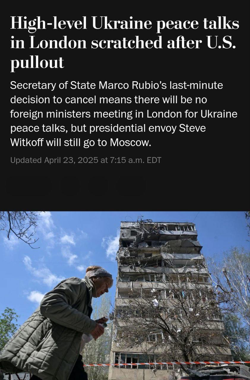 При цьому видання зазначає, що, незважаючи на відмову їхати до Лондона, спецпредставник президента США Стівен Уіткофф не скасовує візиту до Москви, який має відбутися цього тижня.