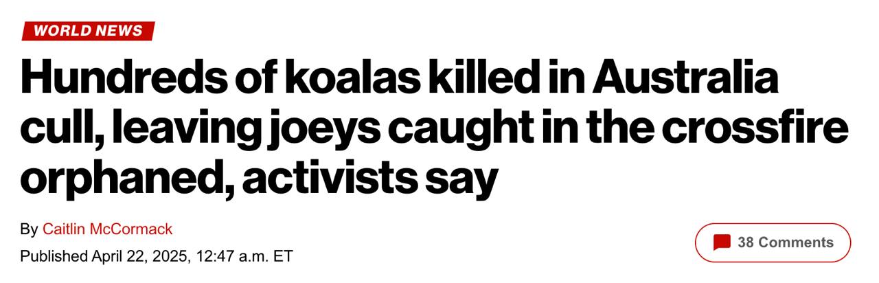 "Використання стрілянини з повітря має розглядатися як крайній захід. Це перший випадок в Австралії, коли коал знищували шляхом стрілянини з вертольота. Такий метод створює небезпечний моральний прецедент", - йдеться у заяві організації зоозахисників Friends of the Earth Melbourne.