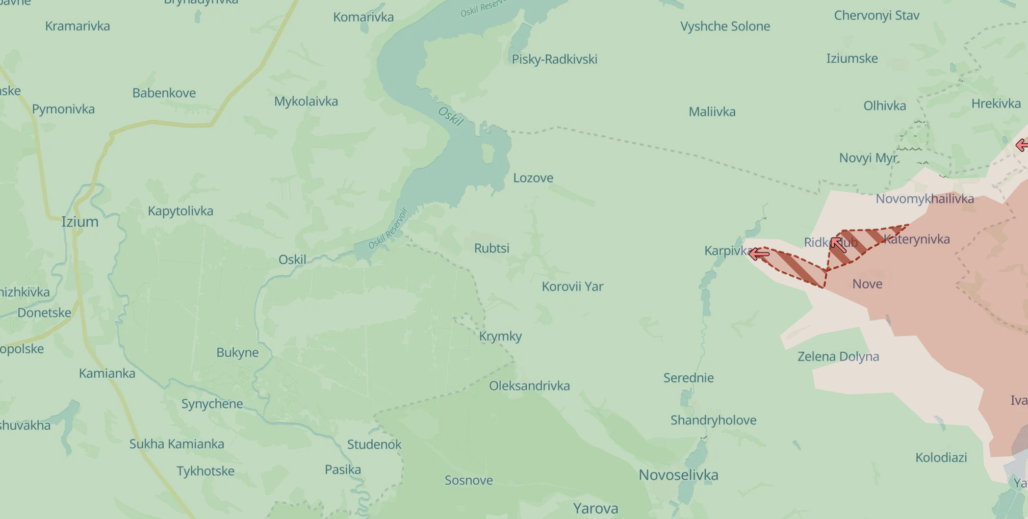 На Харківщині росіяни просунулися до річки Оскол у напрямку Ізюма - в районі Рідкодубу та Карпівки. Просування там склало близько п'яти кілометрів.