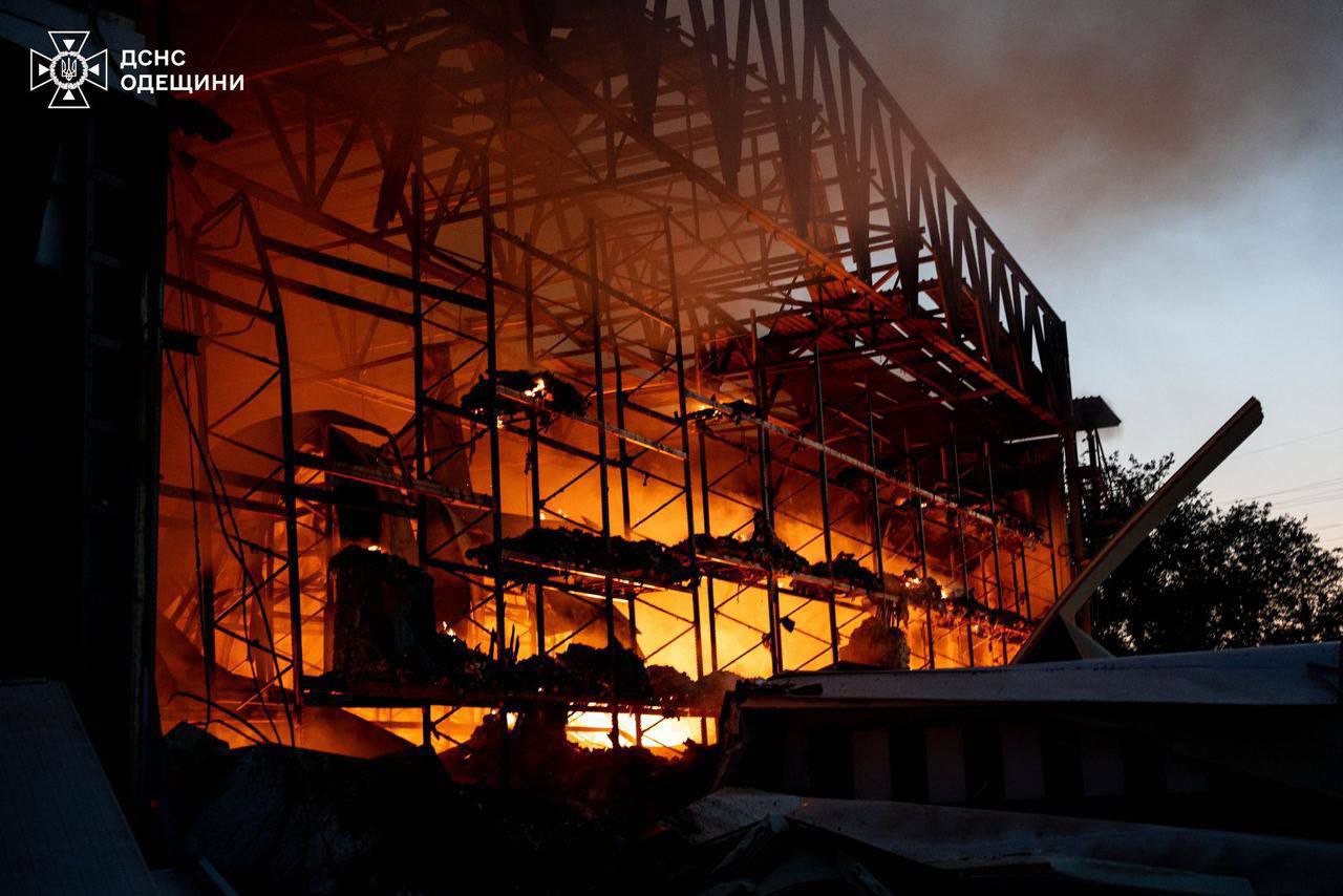 7.54 В Одесі після удару "Шахедами" була низка прильотів. У тому числі горів склад із продуктами харчування, як повідомляє ДСНС.