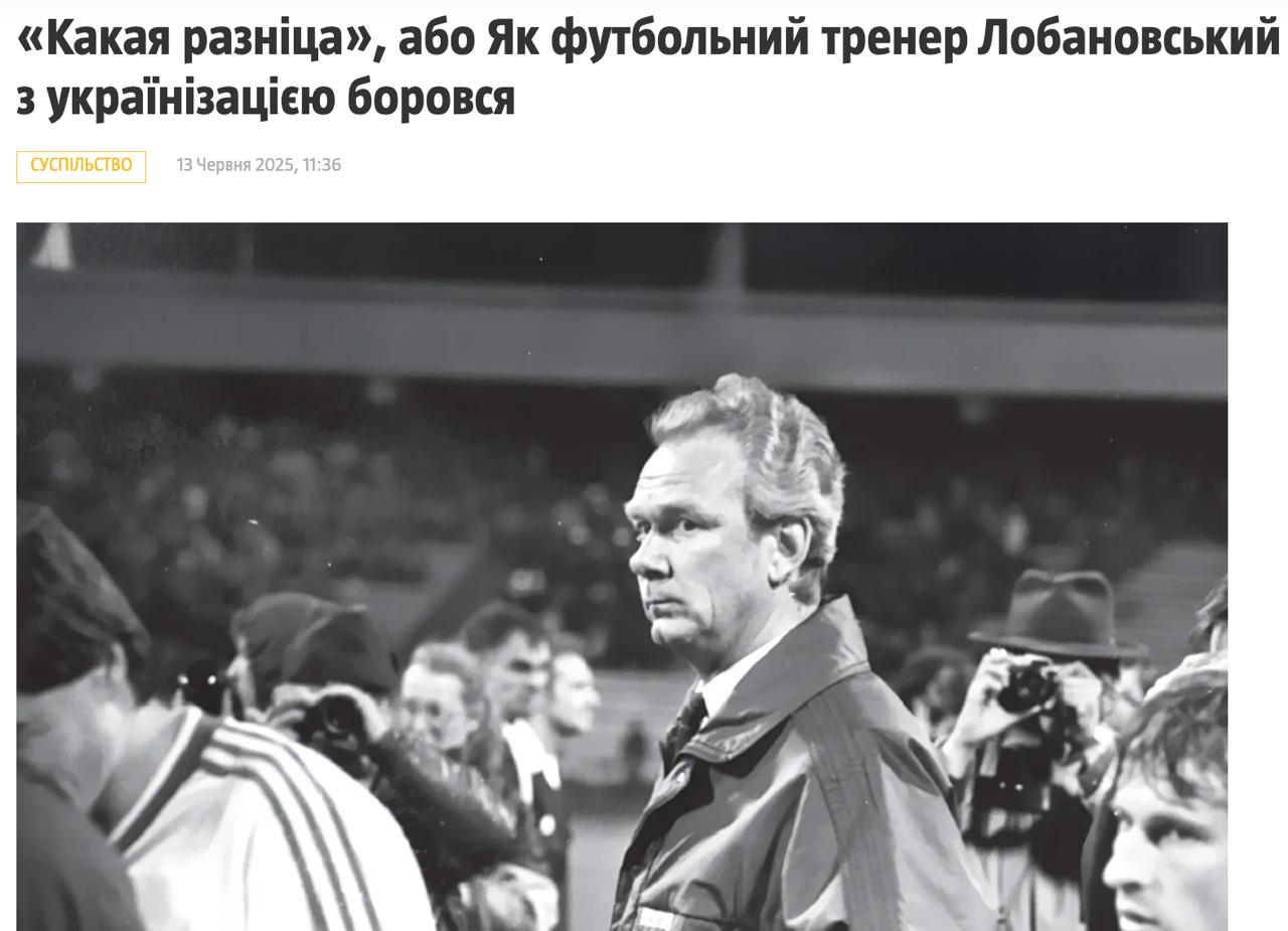 Також у статті наводиться фраза Лобановського, опублікована в газеті "Радянський спорт", з критикою тих, хто порушує у Києві мовне питання та заявляє, що українська мова ніколи не утискалася.