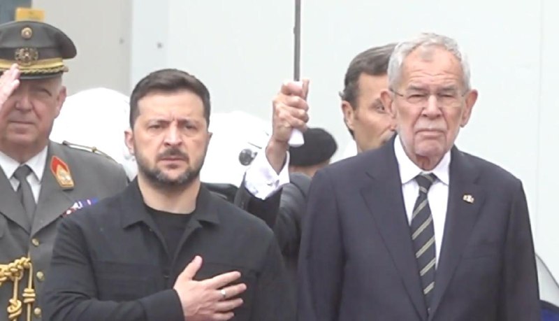 Також місцеві видання пишуть, що Зеленський залишив свою дружину під дощем у Відні. Так, бульварна газета Heute описала відео зустрічі президента України з Ван дер Белленом. Автори матеріалу вважають, що Зеленський припустився помилки.