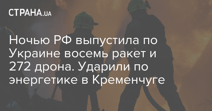 Вночі РФ випустила по Україні вісім ракет і 272 дрони. Вдарили по енергетиці в Кременчуці