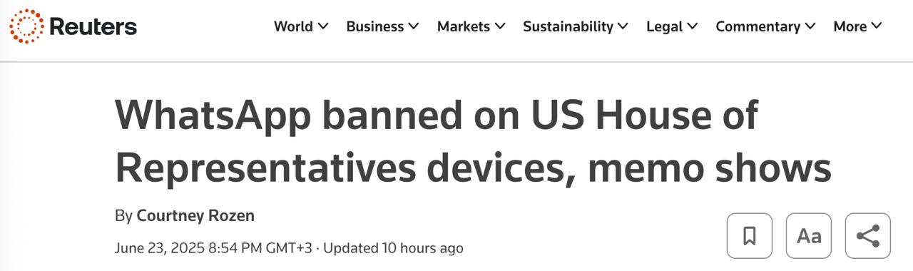 При цьому замість WhatsApp законодавцям та іншим працівникам палати представників пропонують використовувати Teams від Microsoft, iMessage та FaceTime від Apple або Wickr від Amazon та Signal.