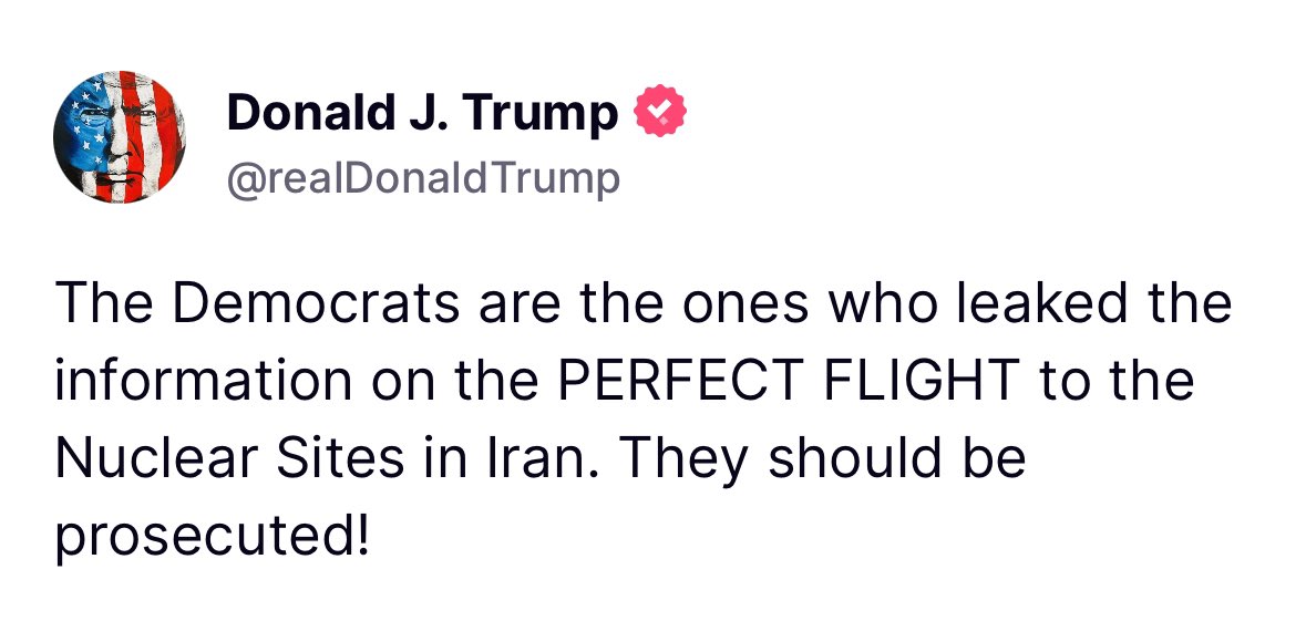 "Це демократи злили інформацію про ідеальний політ до ядерних об'єктів Ірану. Вони мають бути притягнуті до відповідальності!" - Написав він у Truth.
