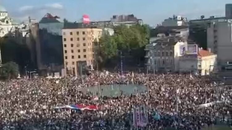 У Белграді на площі Славія відбувається масовий протест студентів та опозиції, який зібрав кілька тисяч учасників.