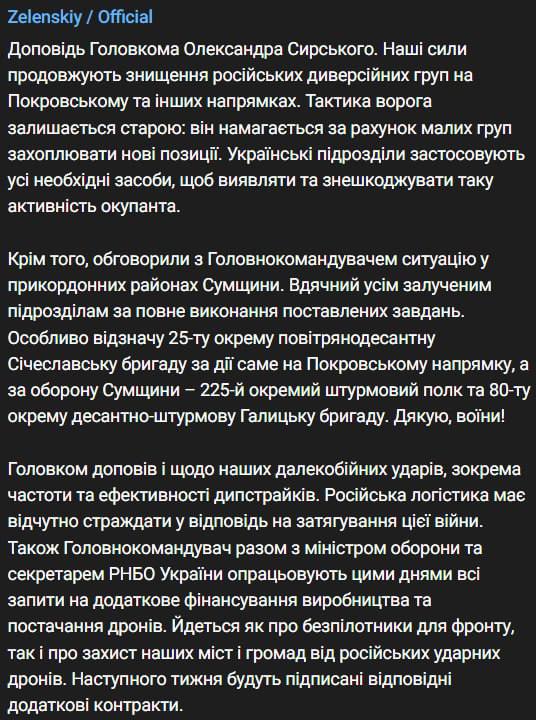 Президент України Володимир Зеленський доручив головнокомандувачу ЗСУ Олександру Сирському, міністру оборони Денису Шмигалю та секретареві РНБО Рустему Умерову збільшити закупівлі дронів та виділити на це фінансування.