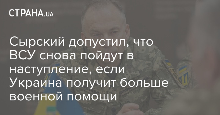 Головнокомандувач Збройних сил України Олександр Сирський припустив, що ЗСУ знову підуть у наступ. Для цього Україна має отримати більше військової допомоги.