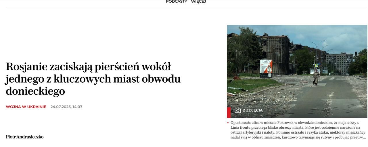 "Якщо Росія візьме Покровськ, це відкриє їй нові можливості. Звільняться сили, зайняті на цій ділянці, і армія зможе загрожувати Дніпропетровській області... Швидше за все, наступною метою стане Костянтинівка. Прямі бої за Костянтинівку загрожують Краматорську та Слов'янську", - йдеться у статті.