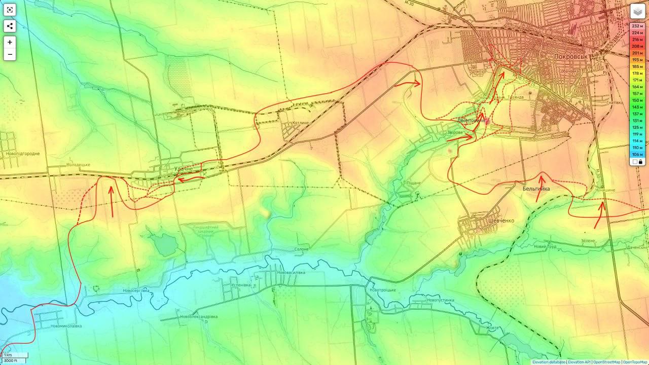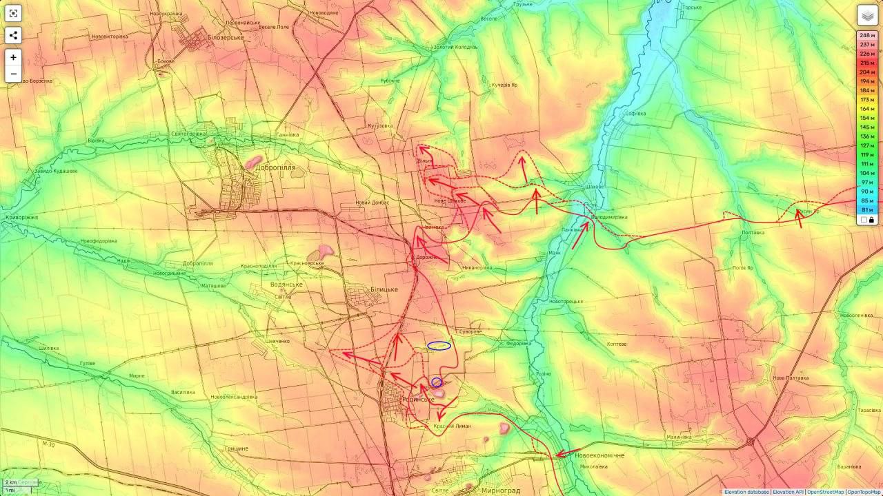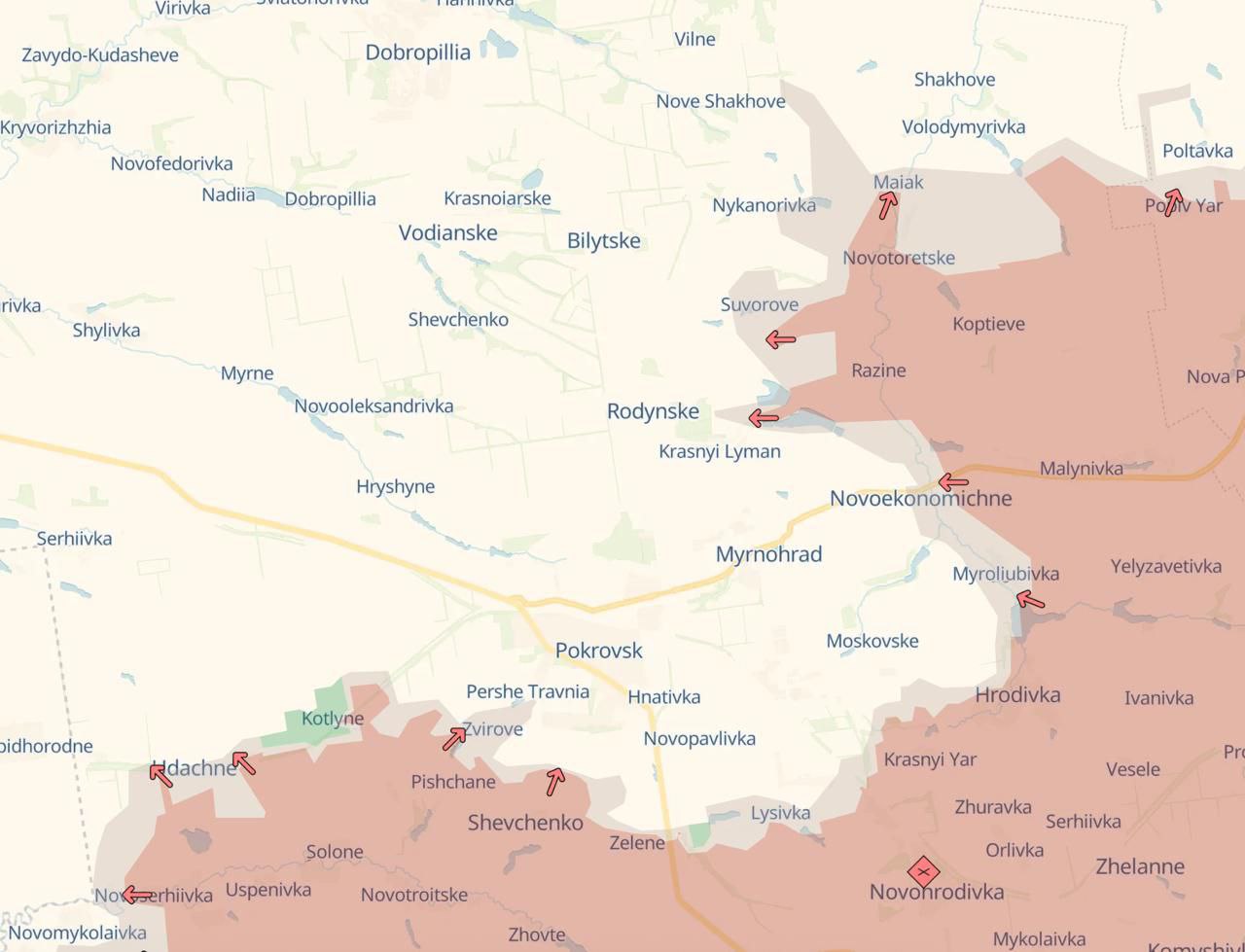 З наближенням росіян до Родінського, що на північ від Покровська (вклинення йде між Родінським та Білецьким, а також у напрямку Добропілля), логістика для ЗСУ суттєво ускладнилася. Як пишуть канали, які збирають пожертвування для українських військових, із п'яти машин до міста дві-три підбиває супротивник. При цьому дорога на Павлоград із Заходу вже давно знаходиться під сильним вогнем РФ.