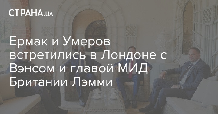 Глава Офісу президента Андрій Єрмак та секретар РНБО Рустем Умєров зустрілися в Лондоні з віцепрезидентом США Джей Ді Венсом та главою МЗС Британії Девідом Леммі.