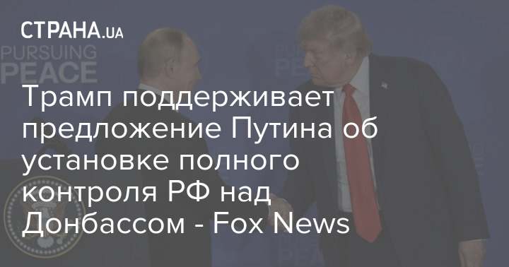 Президент США Дональд Трамп підтримує пропозицію Володимира Путіна про те, щоб РФ встановила повний контроль над Донбасом та на заморожування лінії фронту в інших місцях для укладання угоди з Україною.