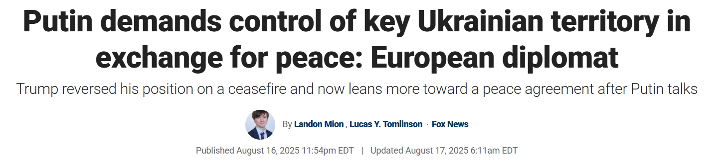 "Після зустрічі з Путіним у п'ятницю на Алясці Трамп повідомив європейським союзникам, що російський президент знову заявив про свою зацікавленість у ключових Луганській та Донецькій областях, але при цьому він, очевидно, відкритий для можливості врегулювання тупикової ситуації в Запоріжжі та Херсоні, а також заморожування напруженості вздовж ліній фронту", - пише видання.