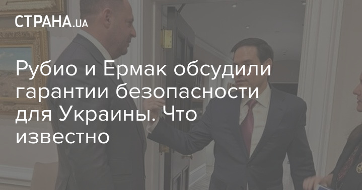 Державний секретар США Марко Рубіо та голова Офісу українського президента Андрій Єрмак на зустрічі радників обговорили гарантії безпеки для України.