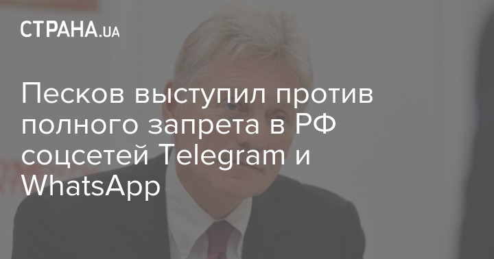 Пєсков виступив проти повної заборони в РФ соцмереж Telegram і WhatsApp
