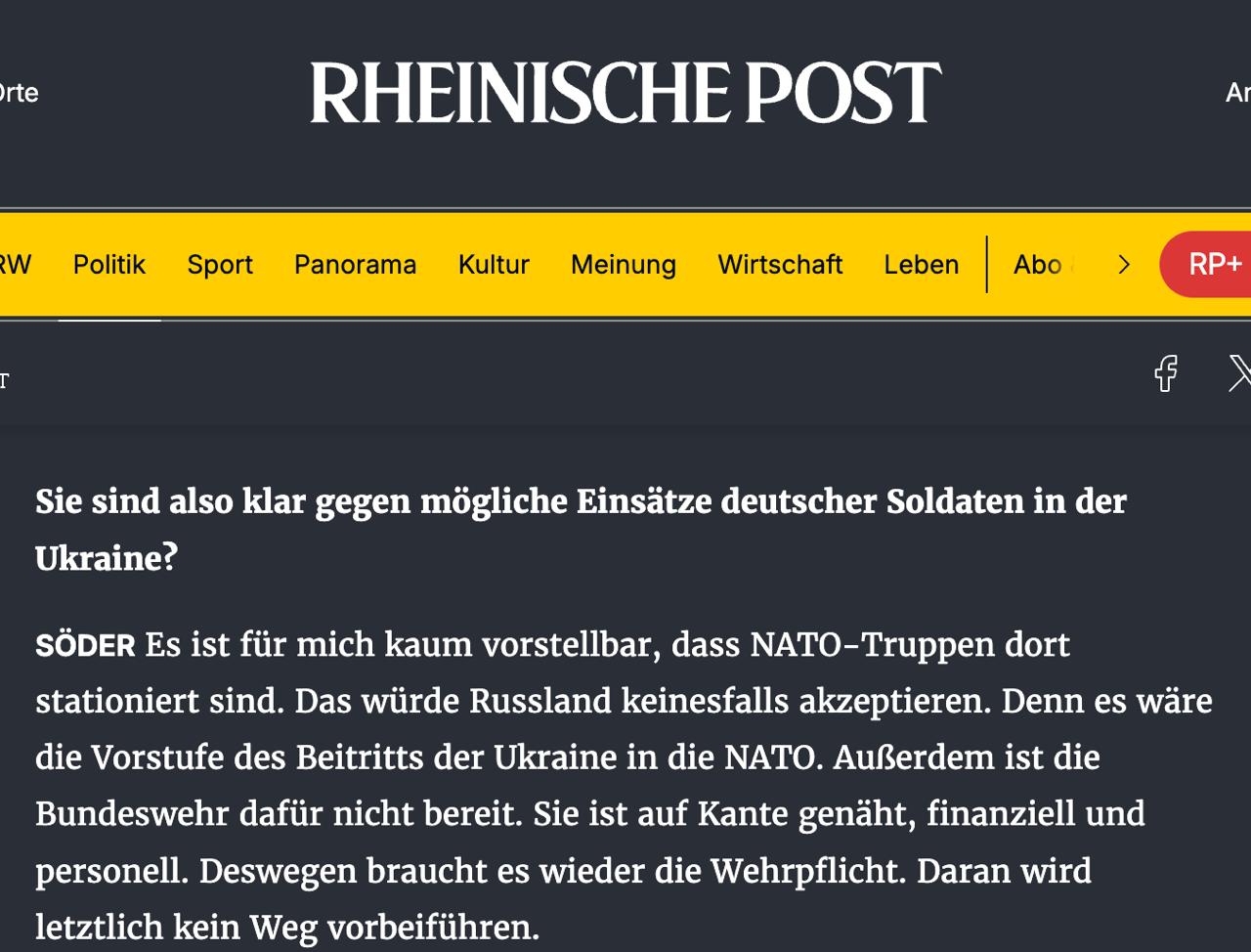 "Світу наразі не передбачається. Тому правомірно розглянути питання про відправку придатних до військової служби українців на батьківщину для забезпечення безпеки у своїй країні", - сказав він в інтерв'ю газеті Rheinische Post.