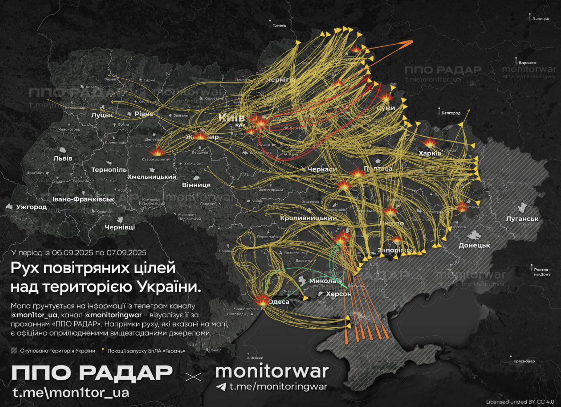 08:53 Цієї ночі зафіксовано черговий антирекорд з далекобійних дронів, запущених Україною - 805.