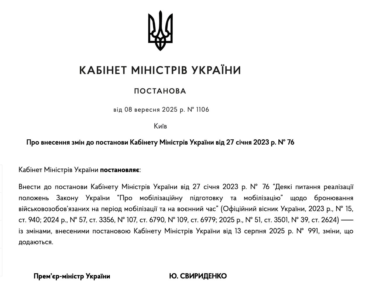 Критерії критично важливих підприємств, які мають право на бронювання, доповнили таким пунктом: "підприємства, установи та організації, що виконують державні контракти (договори) з виробництва безпілотних систем (безпілотних 2 авіаційних комплексів, безпілотних літальних апаратів, безпілотних наземних (роботизованих) комплексів, безпілотних вод техніки, боєприпасів, їх складових частин та інших товарів оборонного призначення на замовлення Адміністрації Держспецзв'язку, інших державних замовників у сфері оборони (у тому числі їхніх служб державного замовника)".