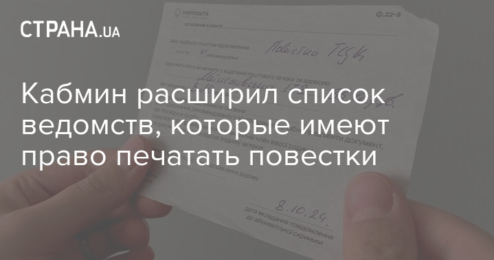 Кабмін розширив список відомств, які мають право друкувати повістки