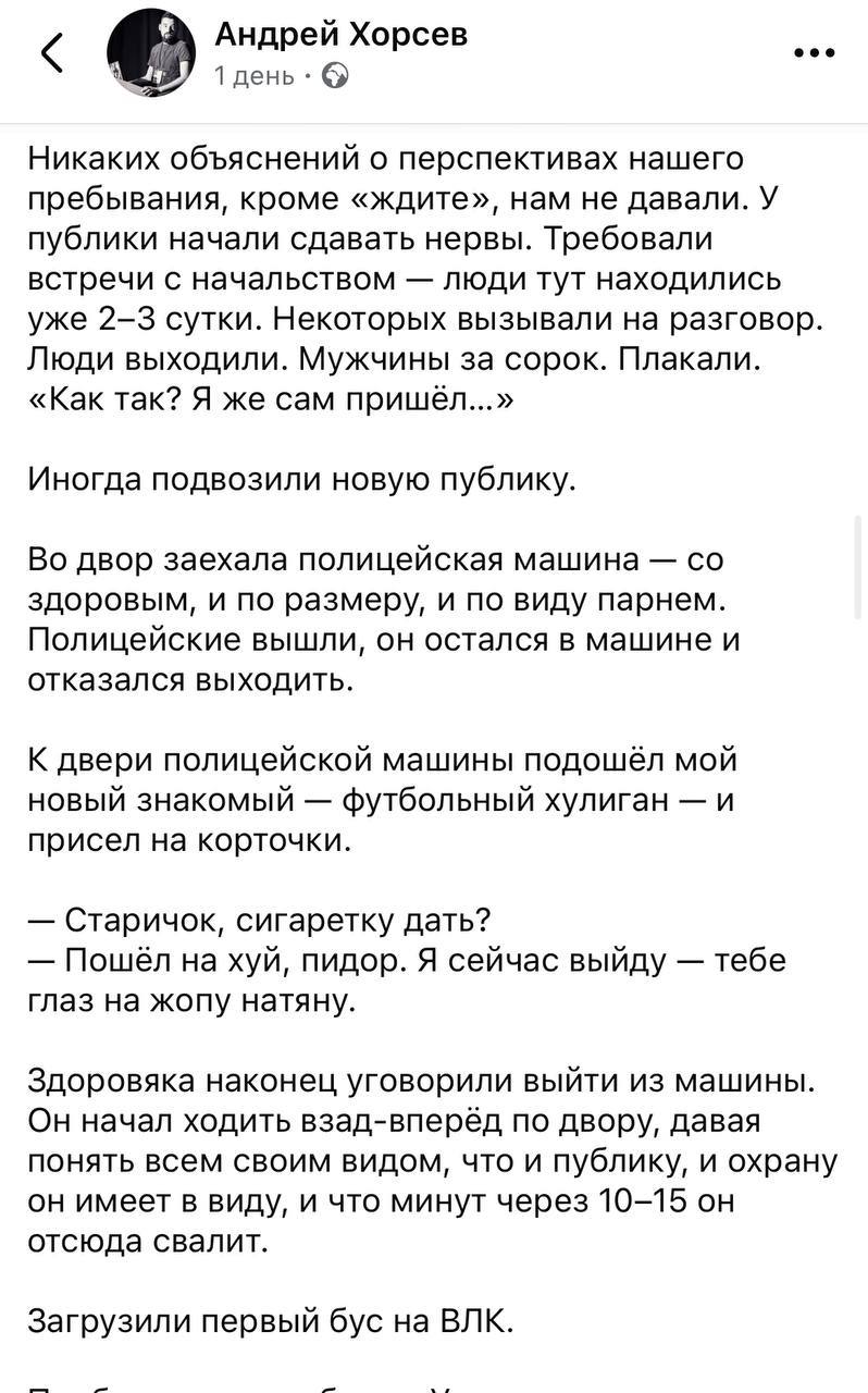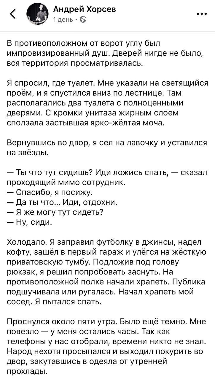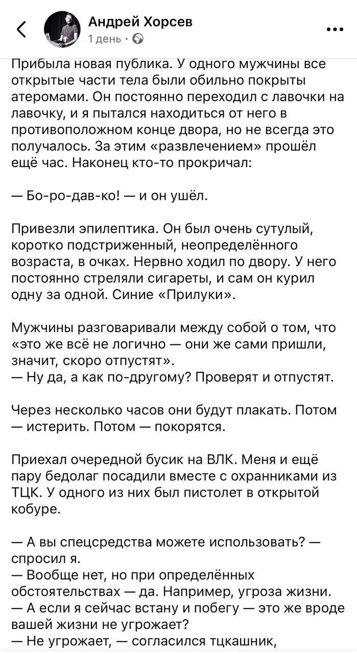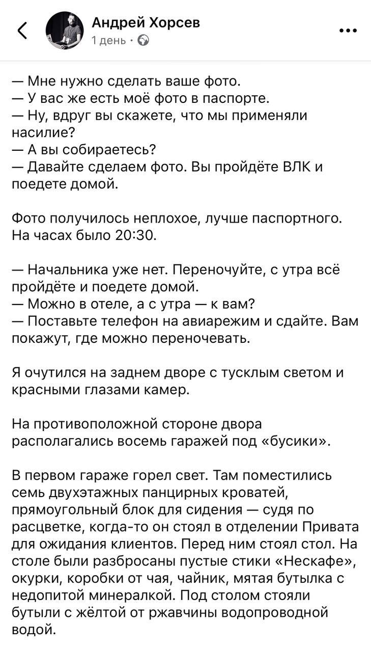 "Сьогодні відпустили, дізнавшись, що маю відношення до В/год. Але ніч у підвалі на голій сітці. Плюс трохи пом'яли. Не таке очікуєш, повертаючись додому", - написав хлопець.