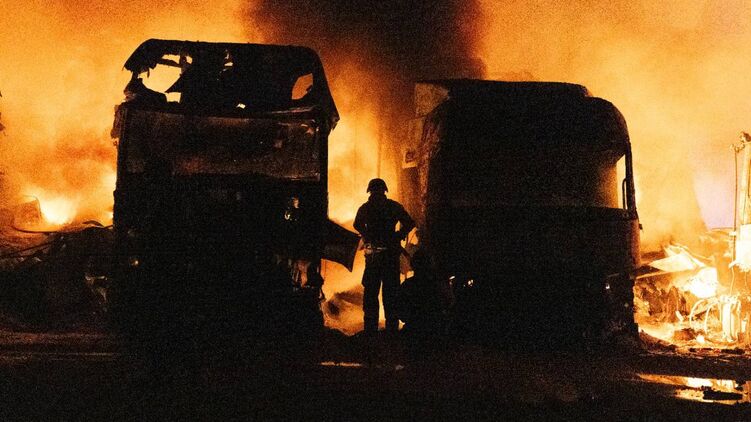У Сумах через нічну атаку сталася масштабна пожежа після удару по стоянці вантажних автомобілів.
