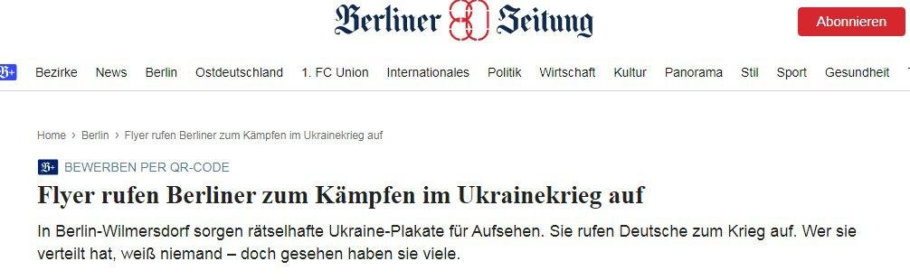 У Берліні з'явилися листівки, які закликають мешканців столиці воювати в Україні.