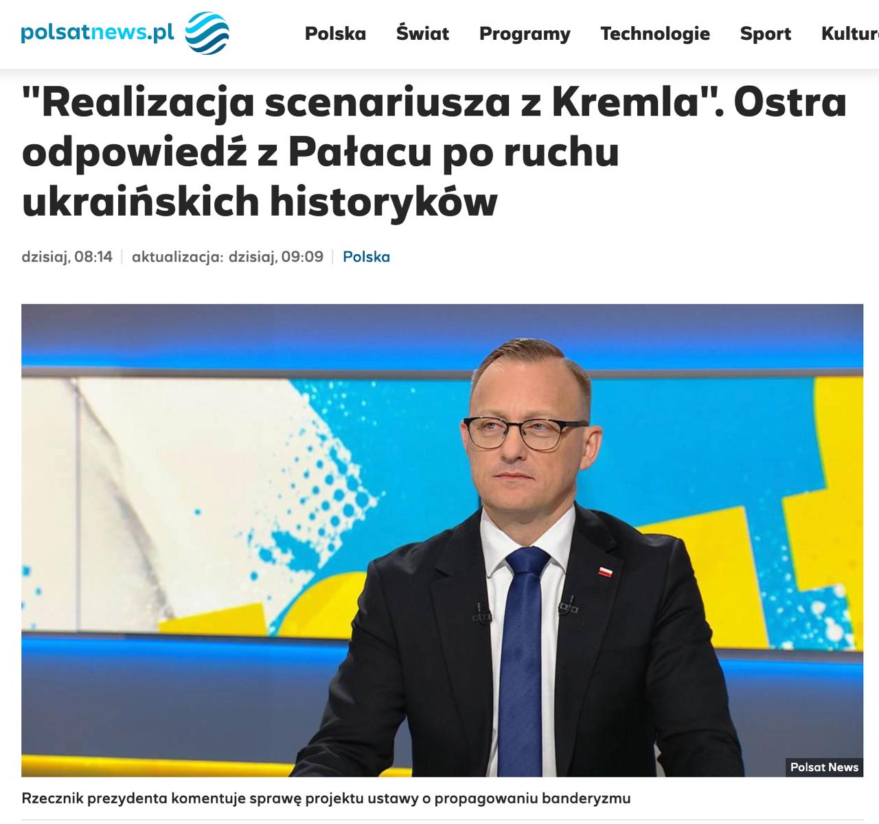 Спікер президента Польщі Рафал Лешкевич у відповідь заявив, що звернення українських істориків – це "реалізація сценарію, написаного у Кремлі".