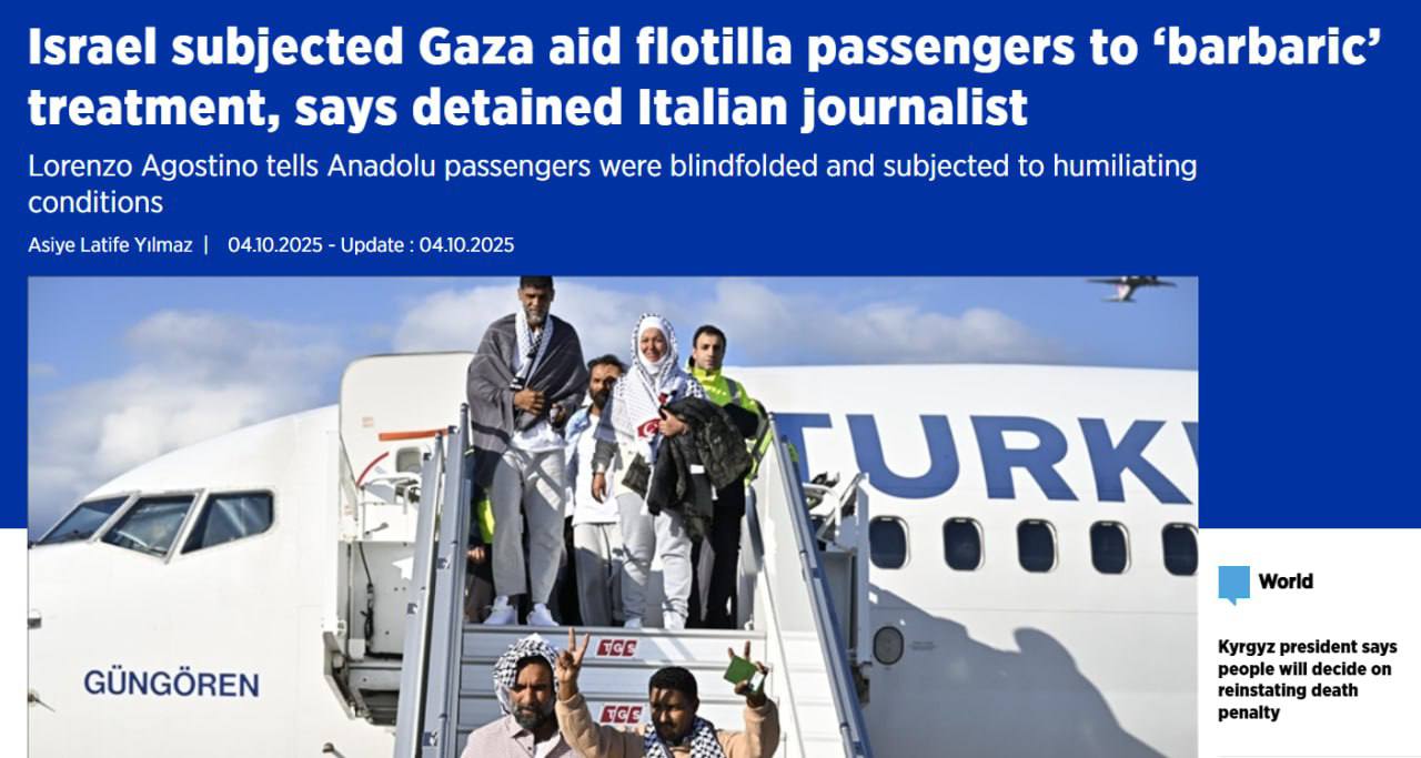А турецький активіст Ерсін Челік заявив Anadolu, що ізраїльські солдати "тягнули маленьку Грету за волосся, били її та змушували цілувати ізраїльський прапор".
