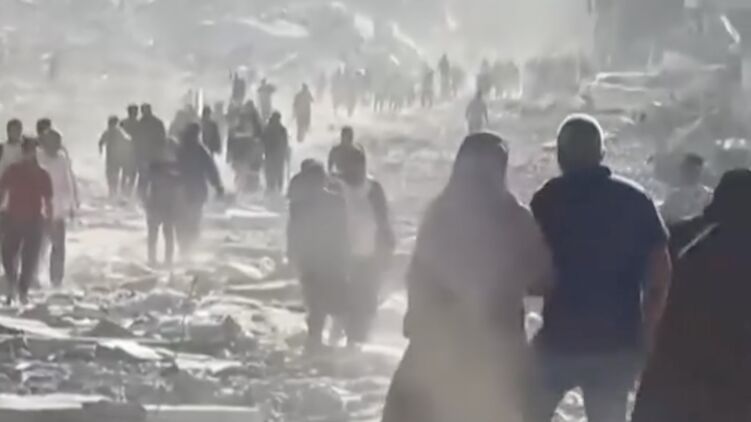 На відеоролику можна помітити величезну колону людей, що йдуть на північ, до міста Газа.