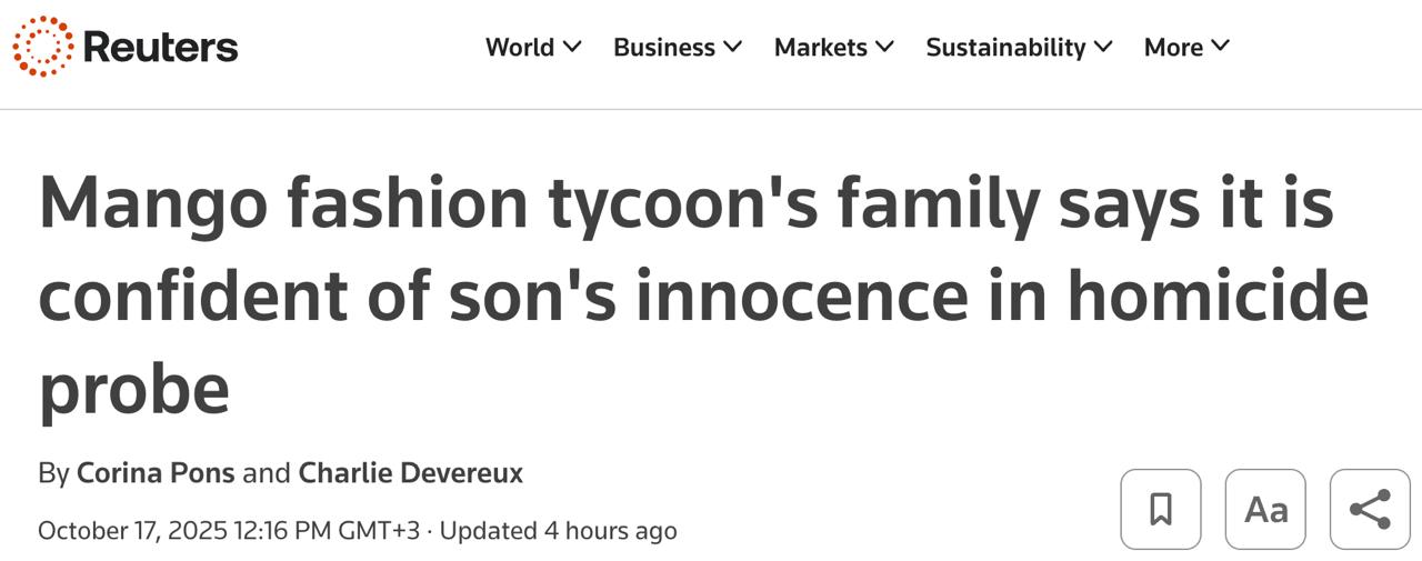 Тим часом близькі до сім'ї свідки стверджують, що за кілька днів до нещасного випадку стосунки між сином та батьком зіпсувалися після вечірки, на якій засновник Mango оголосив про передачу управління компанією генеральному директору замість сина.