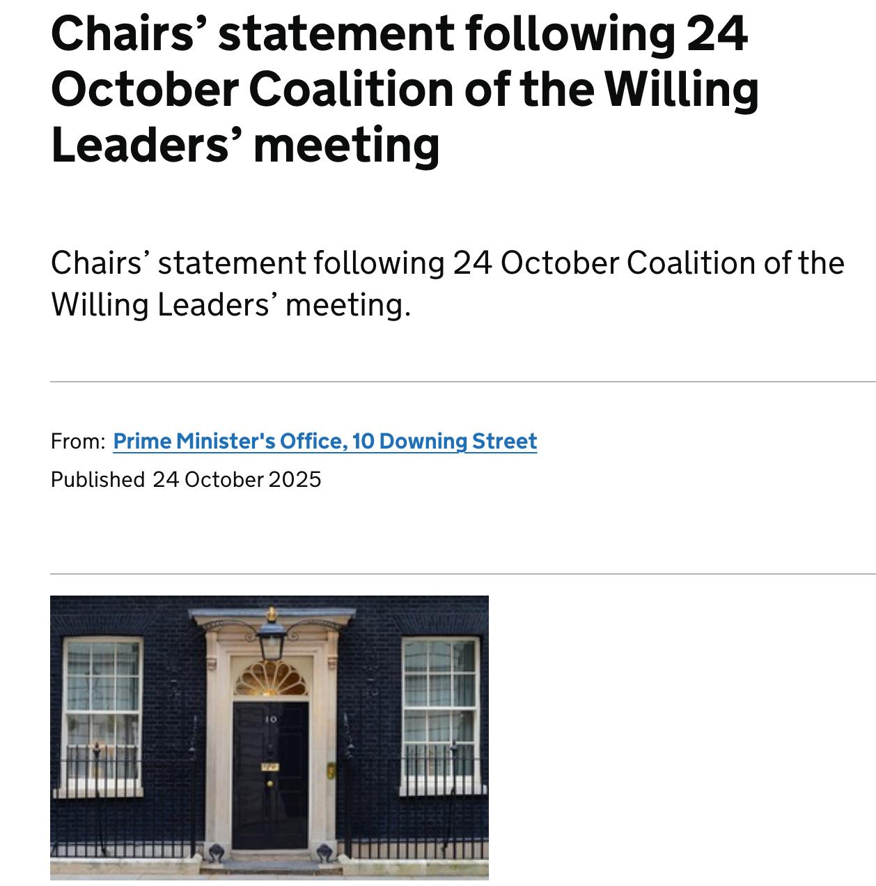 "Після припинення бойових дій планується розгортання Багатонаціональних сил в Україні з метою забезпечення безпеки її неба та морів, а також сприяти відновленню збройних сил країни", - йдеться у заяві (РФ, нагадаємо, виступає проти цього).