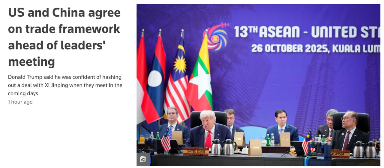 Бессант вже заявив, що 100-відсоткове мито, якому Трамп раніше погрожував Китаю, "фактично знято з порядку денного" після зустрічей з китайцями. Він також висловив сподівання, що Пекін скасує експортний контроль на рідкісноземельні метали.