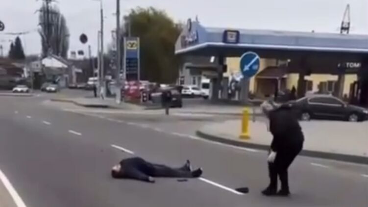 Виїжджаючи, машина двічі збила одного із цивільних, який намагався її зупинити. Вперше швидкість автомобіля була невеликою і чоловік продовжив блокувати транспортний засіб. Вдруге громадянський уже біг перед капотом і після падіння залишився нерухомо лежати на проїжджій частині.