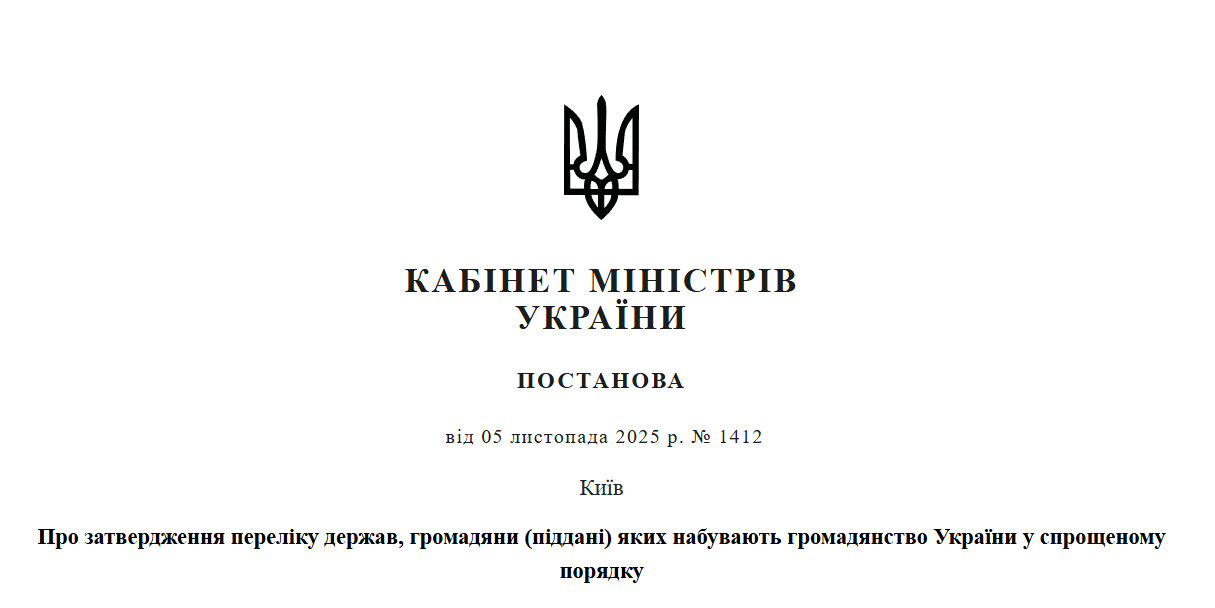 Кабінет міністрів затвердив п'ять країн, громадяни яких зможуть отримати український паспорт у спрощеному порядку та мати подвійне громадянство.