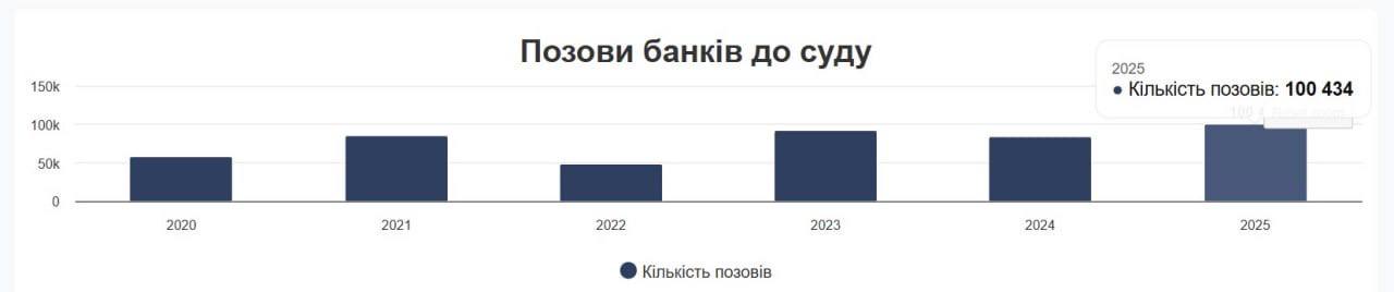 У ньому уточнюється, що головними подавцями позовів у 2025 році стали три роздрібні банки: