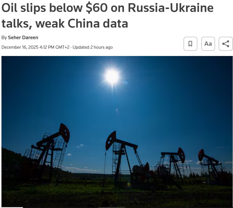 "Сьогодні вранці ціна на нафту марки Brent вперше за кілька місяців опустилася нижче 60 доларів за барель, оскільки ринок оцінює можливість укладання мирної угоди, в результаті якої стануть доступні додаткові обсяги російської нафти, що призведе до подальшого надлишку пропозиції на ринку", - заявив аналітик Rystad Джанів Шах.