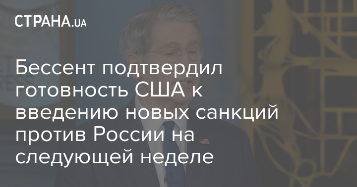 Міністр фінансів США Скотт Бессент заявив, що готовий до запровадження додаткових санкцій проти Росії наступного тижня.